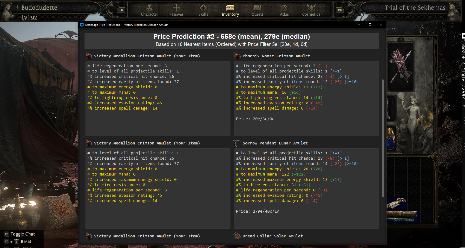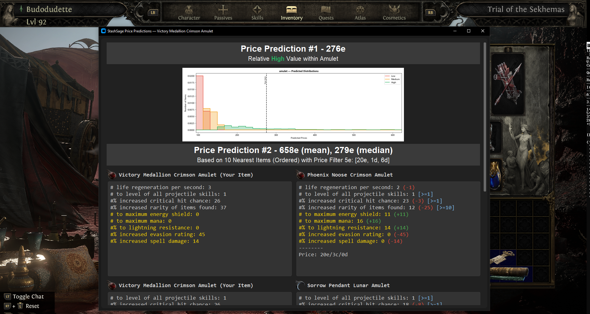 (or custom hotkey) to bring up the mod filters and filtered prediction overlay. - Review the predictions (#1 = xgboost, #2 = knn) and compare to similar items.